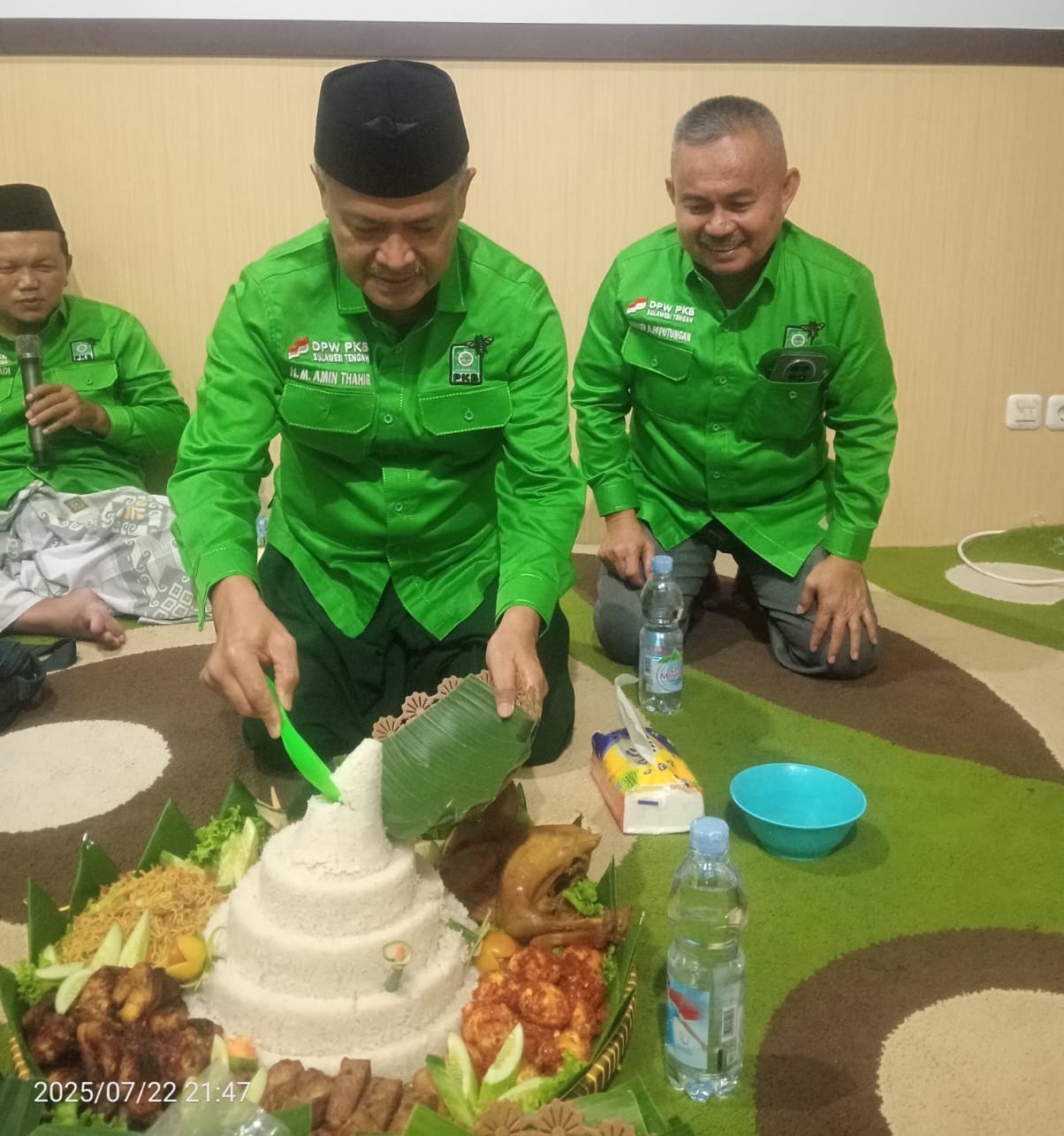 Wakil Ketua Dewan Syuro DPW PKB, Hi. Mohamad Amin Thahir, SH secara khusus memimpin doa khatmil qur’an, sekaligus memotong tumpeng sebagai simbol peringatan Harlah PKB ke-27.