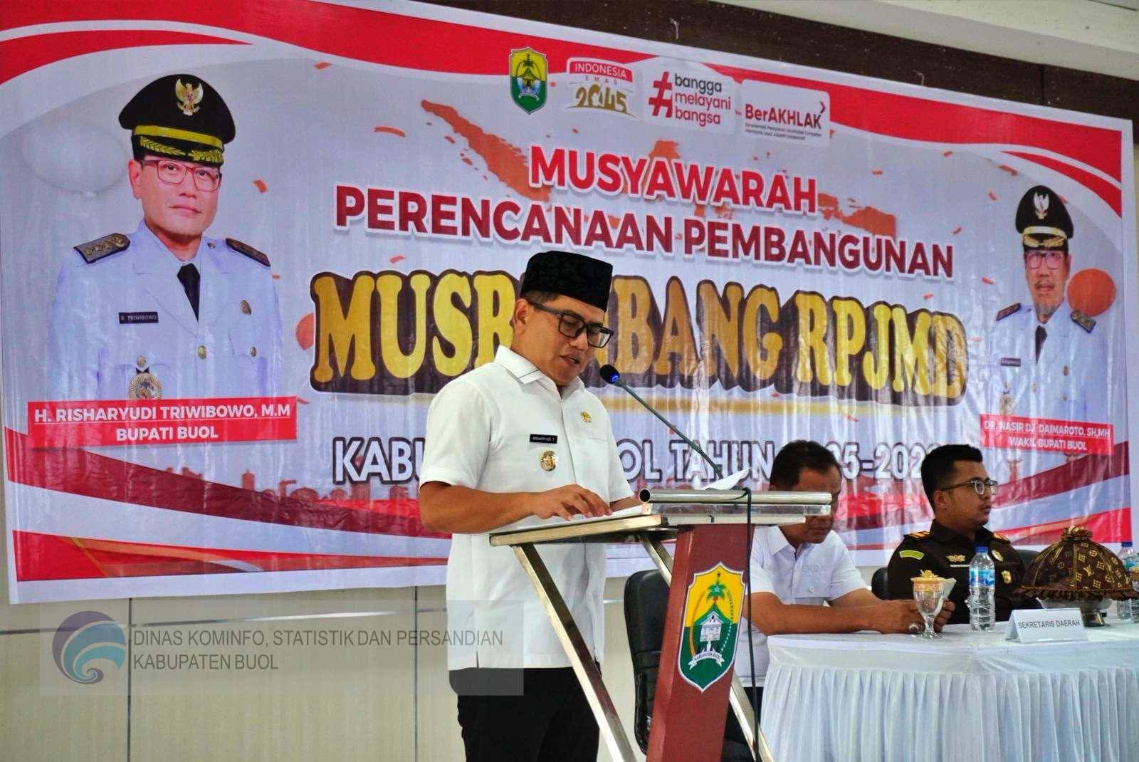 Dalam sambutannya, Bupati Buol menegaskan bahwa musyawarah perencanaan pembangunan ini merupakan tahapan penting dalam penyusunan RPJMD yang akan menjadi pedoman arah pembangunan daerah selama lima tahun ke depan.
