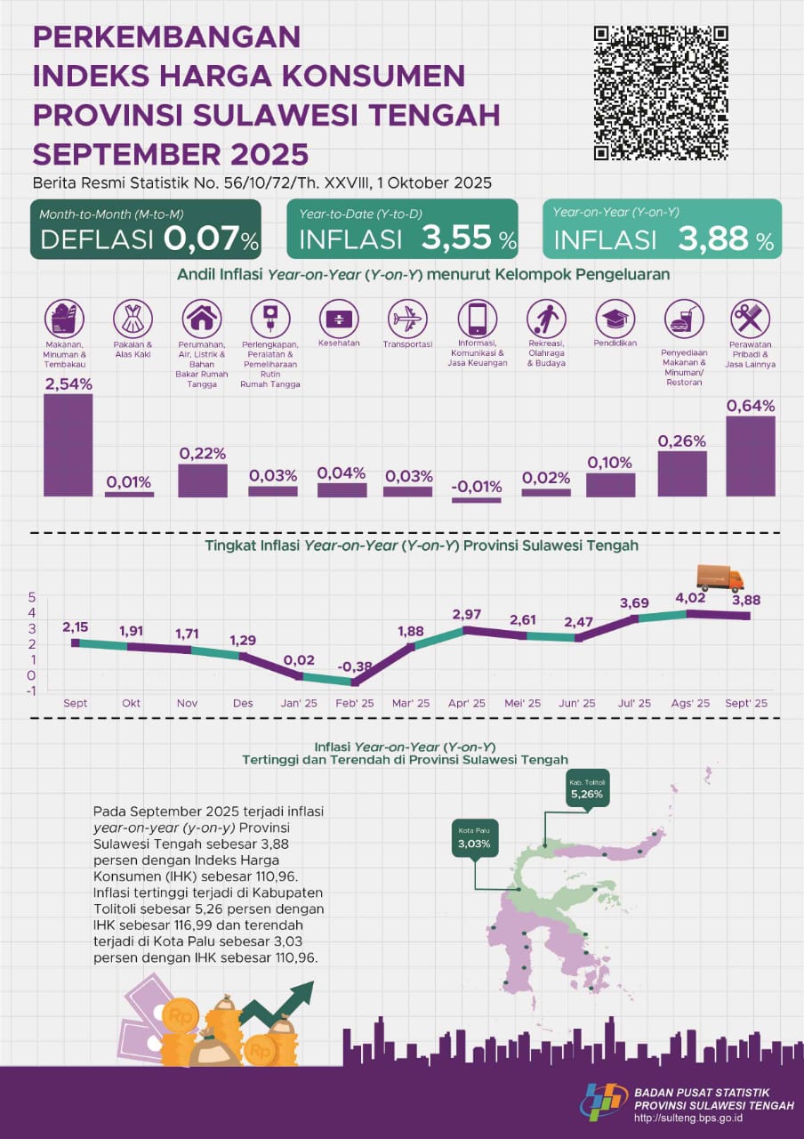 Data ini menunjukkan bahwa inflasi Provinsi Sulteng pada September 2025 berada di urutan 5 besar nasional.