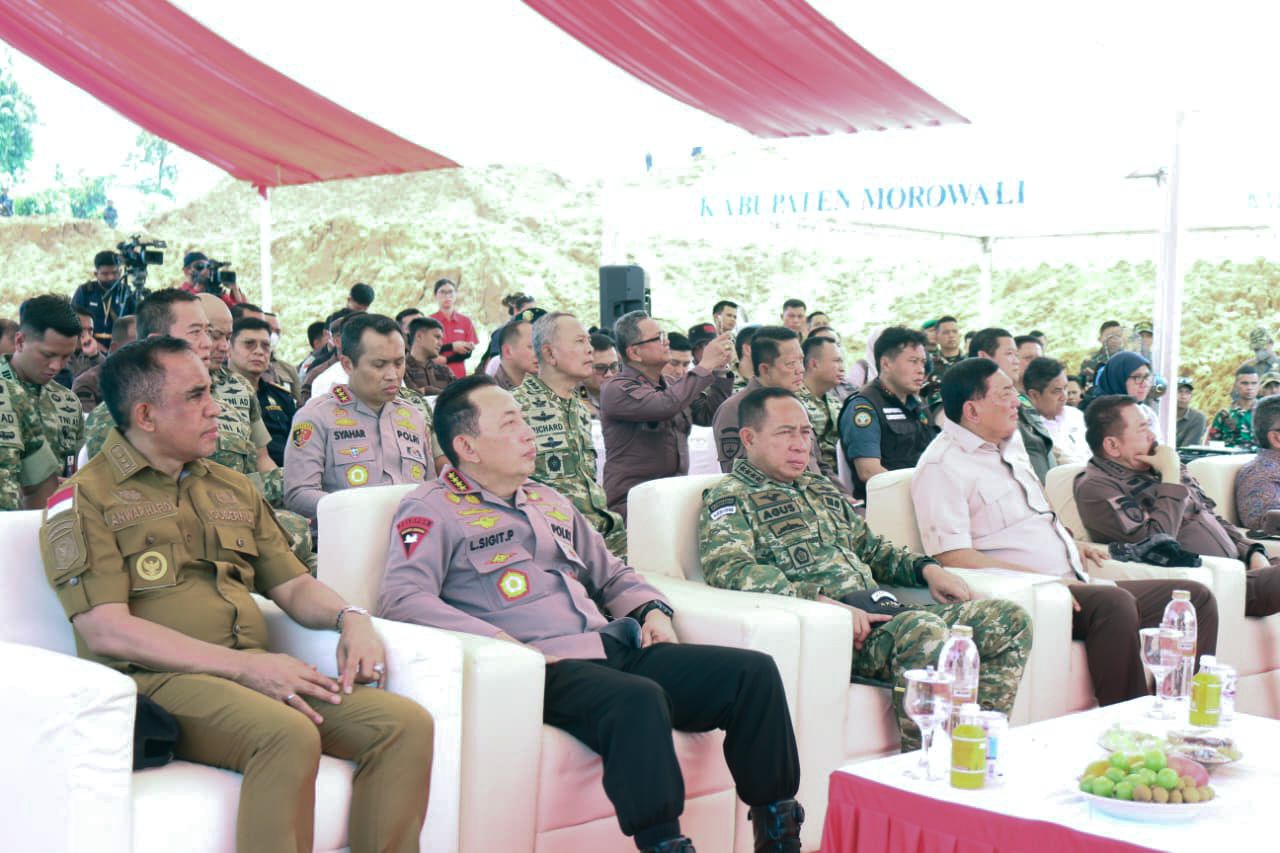 MOROWALI, Sulteng Today – Menteri Pertahanan Republik Indonesia, Sjafrie Sjamsoeddin, bersama Gubernur Sulawesi Tengah, Dr. H. Anwar Hafid, M.Si, meninjau proses penertiban aktivitas pertambangan tanpa izin di wilayah PT Bumi Morowali Utama, Selasa, 4 November 2025.