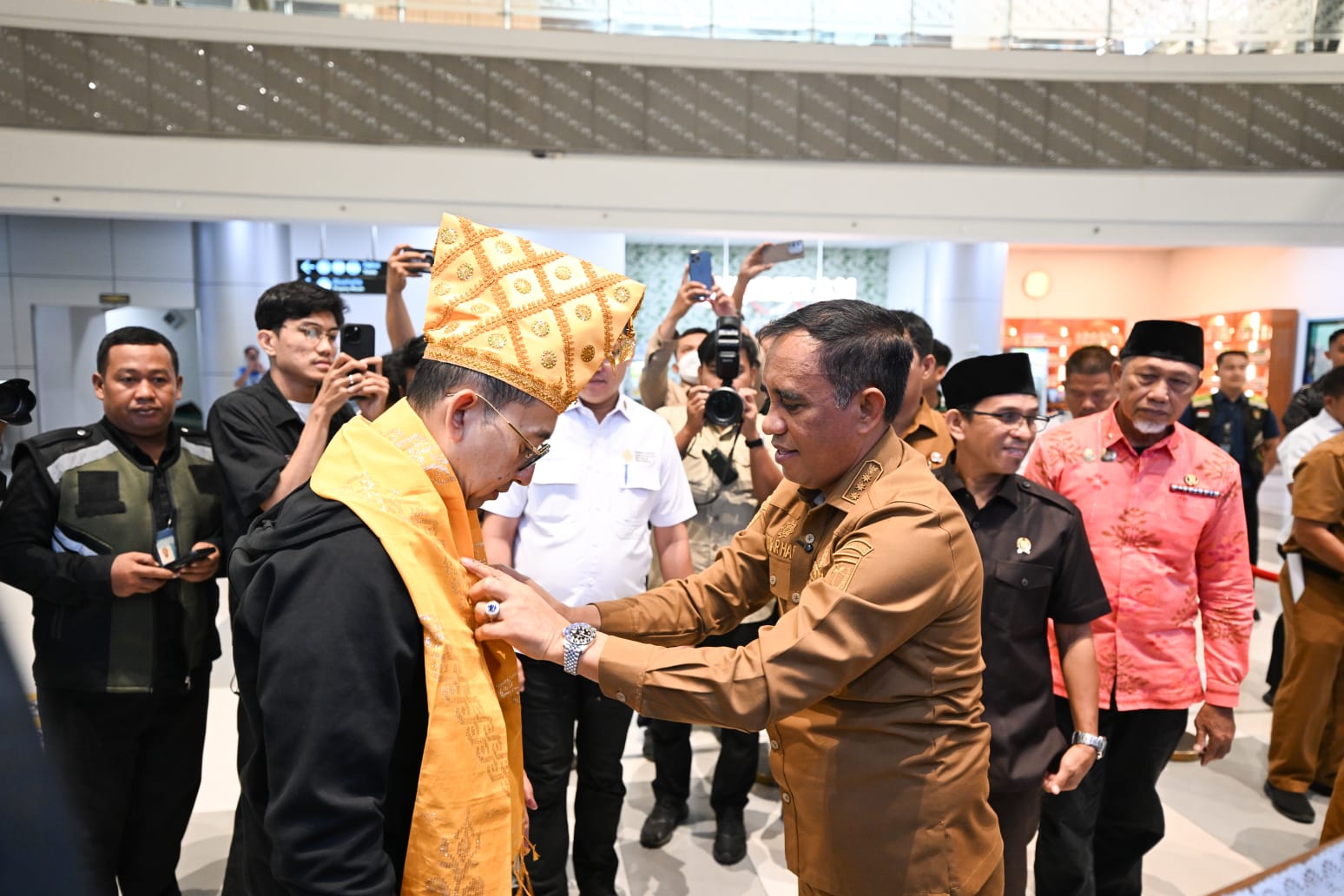 Dalam penyambutan tersebut, Gubernur dan Wakil Gubernur turut didampingi Anggota DPRD Provinsi Sulawesi Tengah Mahfud Masuara, S.H., Kepala Bandara Mutiara SIS Al-Jufri Prasetiyohadi, S.T., S.H., M.H., Kepala Dinas Kebudayaan Provinsi Sulawesi Tengah Andi Kamal Lembah, S.H., M.Si., Kepala Badan Kesatuan Bangsa dan Politik Drs. Arfan, M.Si., unsur Forum Koordinasi Pimpinan Daerah (Forkopimda), serta sejumlah o di lingkungan Pemerintah Provinsi Sulawesi Tengah.